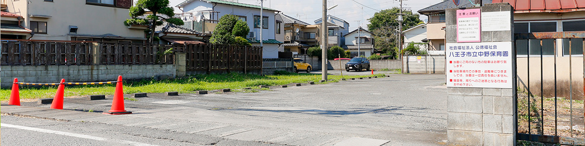 建物裏側の道路を秋川街道方面に約50mのところに保護者用駐車場をご用意しております。